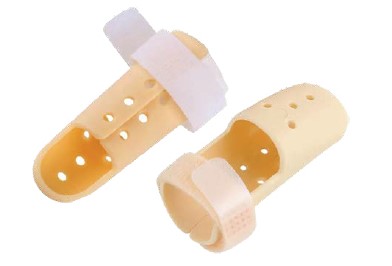 kloubu (DIP) prstu ruky v nulovém postavení při pooperačních a poúrazových stavech tohoto kloubu. Pevná plastová skořepa fixovaná na prstu páskem, imobilizuje distální